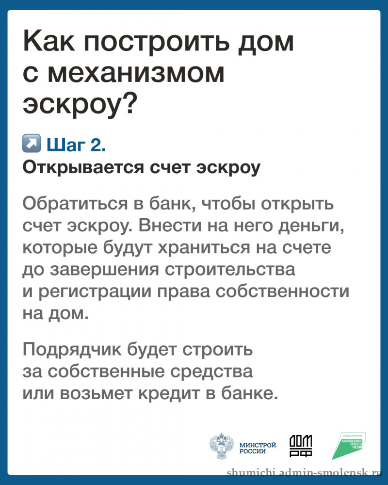 В целях повышения прозрачности и безопасности расчетов за строящееся жилье Администрация округа информирует вас об использовании эскроу-счетов при реализации проекта.