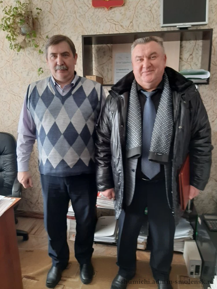 23 января 2026 года состоялась рабочая встреча начальника Отдела экономики, комплексного развития и инвестиционной деятельности Ю.А. Старовойтова с председателем ШПО "Шумячи Хлеб" С.А. Кожемяко.