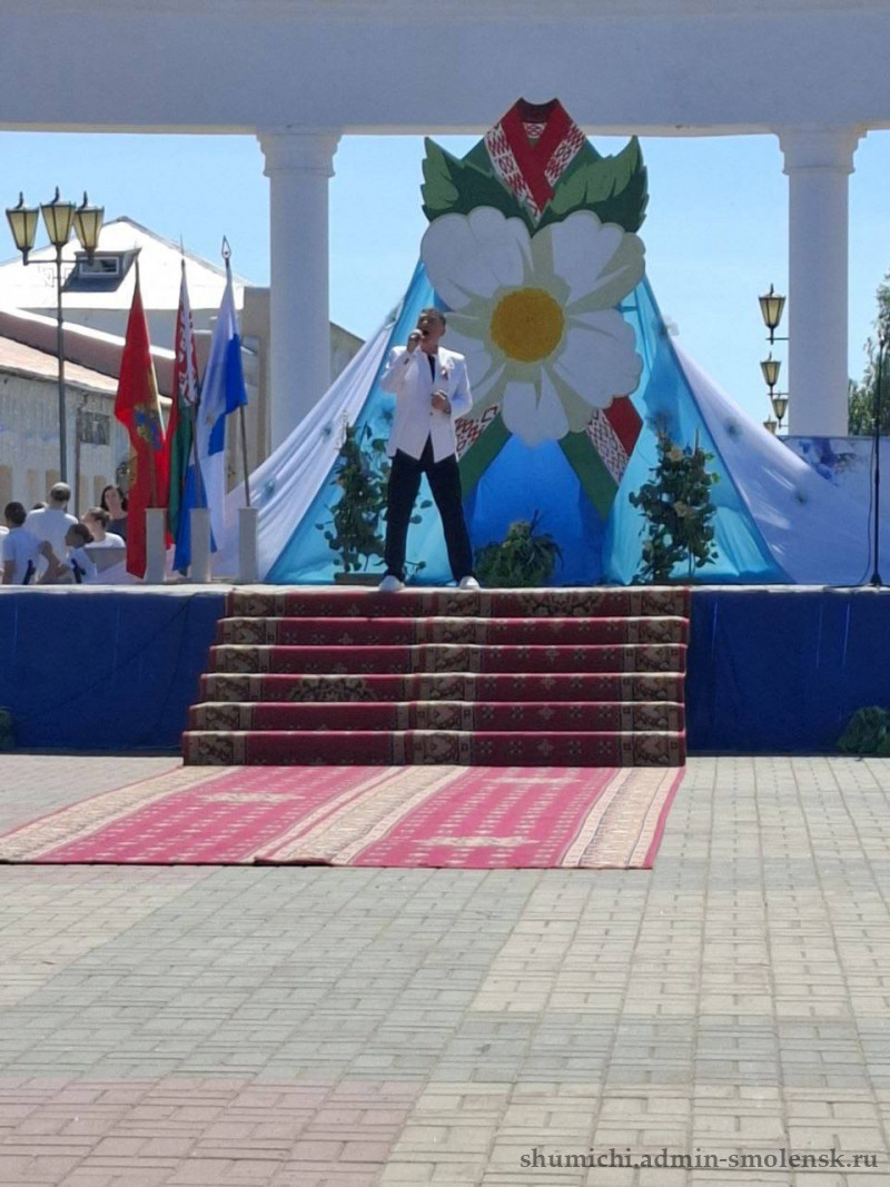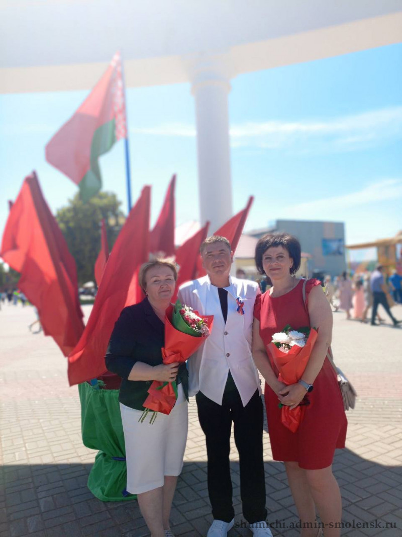 3 июля, делегация Шумячского муниципального округа в составе Заместителя Главы муниципального образования "Шумячского муниципального округа" Смоленской области Варсановой Г. А., начальника отдела по культуре и спорту Астаховой Н.М. и солиста Шумячского районного Дома культуры Сергея Сокола приняли участие в праздничном мероприятии " День независимости Республики Беларусь !", который прошёл в городе Мстиславль.