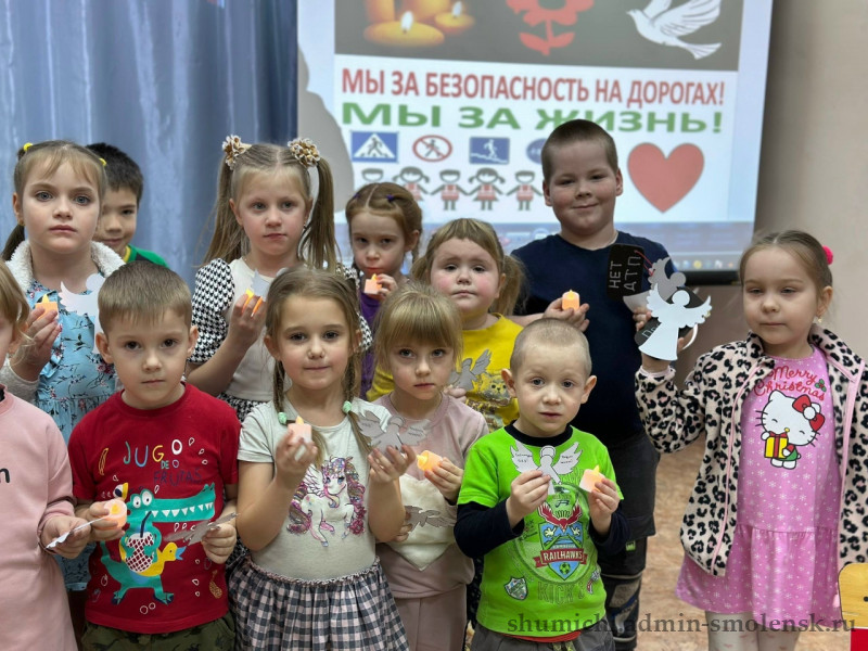 В преддверии Дня памяти жертв дорожно транспортных происшествий ребята из МБДОУ Детский сад «Мишутка» совместно с инспектором Госавтоинспекции МО МВД России «Рославльский» провели трогательную акцию «Ангел памяти».