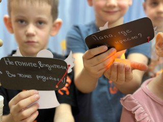 После теоретической части, дети изготовили «Ангела памяти» - которые сделали своими руками, призывая участников акции к соблюдению Правил дорожного движения. На каждом ангеле была надпись : «Не гоните водители, вы ведь тоже родители!», «Папа, где моё кресло», «ПДД для всех!», «Нет ДТП».