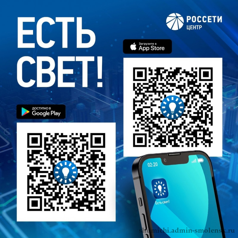 Установить приложение «Есть свет!» можно через магазин приложений мобильного устройства App Store, Google Play, RuStore, перейдя по ссыке ниже или отсканировав QR-code: