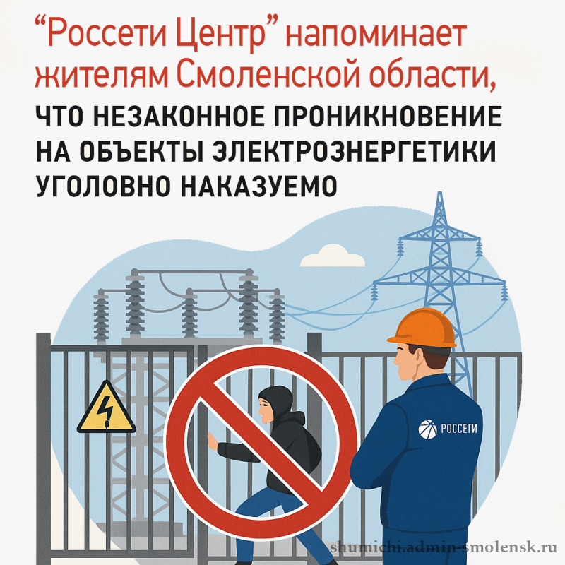 - Энергетики смоленского филиала «Россети Центр» напоминают жителям региона, что незаконное проникновение на объекты электроэнергетики уголовно наказуемо
