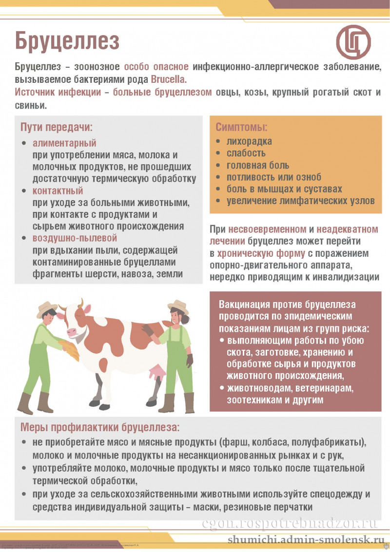 Территориальный отдел Управления Роспотребнадзора по Смоленской области в Рославльском, Ершичском, Монастырщинском, Хиславичском, Шумячском районах, в целях обеспечения санитарно-эпидемиологического благополучия населения, просит Вас, для информирования населения, разместить памятку о профилактике бруцеллеза согласно приложению.