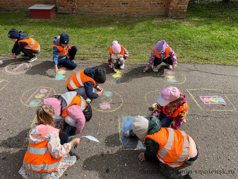 После активной части мероприятия все собрались на асфальте, где началась творческая часть акции. Дети взяли в руки мелки и начали рисовать дорожные знаки. Под руководством сотрудника полиции они изобразили светофоры, пешеходные переходы и знаки «Стоп». Это занятие не только развивало творческие способности детей, но и помогало лучше запомнить правила дорожного движения.