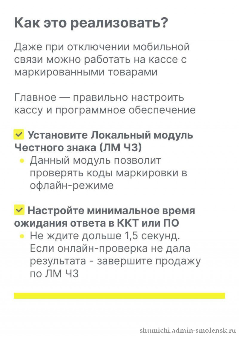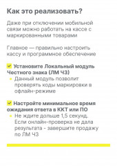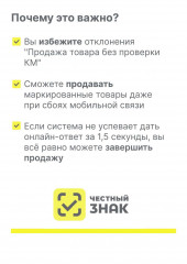 Офлайн режим позволит проверять товар даже при отсутствии интернета с помощью запроса в локальную базу данных, которая будет подгружена с помощью Локального модуля Честного знака.