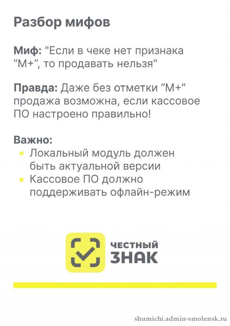 Точные пошаговые действия зависят от вашего верхнеуровневого программного обеспечения (товароучетной системы или кассового ПО). В инструкциях также объясняется как работает Локальный модуль в офлайн режиме, например, как выглядит уведомление кассиру о запрете продажи.