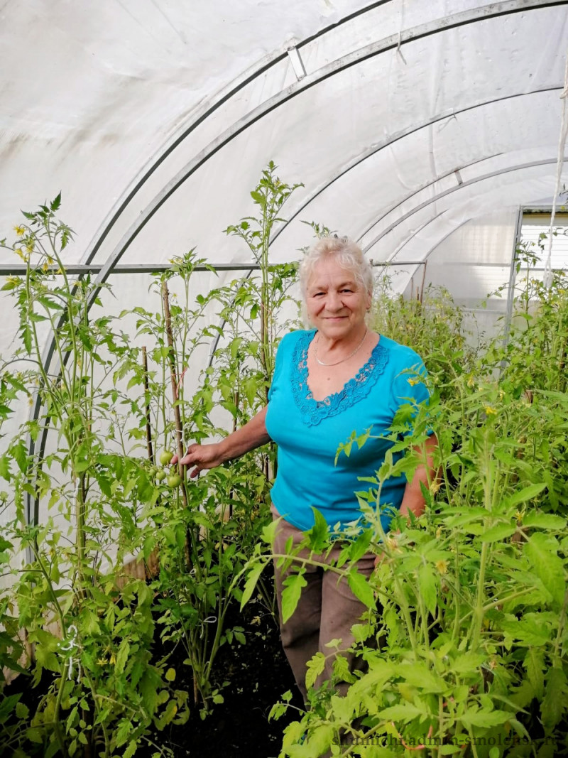 На грядках у Раисы Григорьены тоже всё в порядке. Ни травинки, ни соринки. Картошка, морковка, свекла, лук, чеснок, фруктовые деревья, ягоды, помидоры и огурцы в теплицах – всё растёт и радует глаз! И это несмотря на то, что участок сам по себе сырой, а дождливое лето ещё добавило хлопот, наша хозяюшка не сдаётся. Использует все свои знания и смекалку, но урожая всегда добивается отменного. Как подтверждение – батарея банок и баночек с соленьями и вареньями – всё для родных, своими руками!