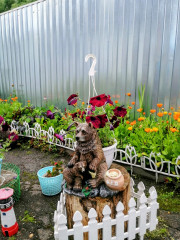 Несмотря на плохие погодные условия – смотр конкурс «Ветеранское подворье 2025» всё же стартовал. Первая участница смотра – жительница посёлка Шумячи Раиса Григорьевна Сакович. Раиса Григорьевна хорошая хозяйка, активная участница всевозможных мероприятий в Клубе Золотого возраста, любящая и любимая мама и бабушка. Родные люди – первые помощники в воплощении хозяйских задумок. Подворье Раисы Сакович утопает в цветах и зелени. Всевозможные кашпо и вазоны собраны в оригинальные композиции. Прекрасное дополнение – коллекция милых садовых фигурок, которая постоянно пополняется. Но настоящая изюминка на участке Раисы Григорьевны – рукотворный пруд и фонтан с подсветкой. Такому чуду не устают удивляться соседи и тихими летними вечерами приходят посидеть у прудика на скамеечке, поговорить, отдохнуть после дневной суеты под убаюкивающее журчание водички.