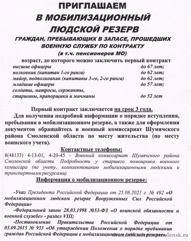 - Приглашаем в мобилизационный людской резерв