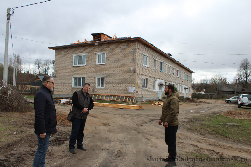 8 апреля 2026 года Глава муниципального образования "Шумячский муниципальный округ" Смоленской области Дмитрий Анатольевич Каменев провел инспекцию выполнения работ по капитальному ремонту многоквартирных домов на улице Маяковского в посёлке Шумячи. Подрядные организации ООО «Эверест» и ООО «Соберо» продолжают ремонт в соответствии с утверждёнными сроками.