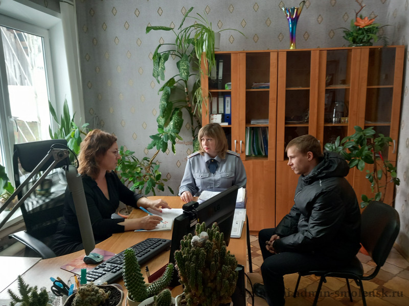 7 апреля 2025г. в отделе СОГКУ «Центр занятости населения Рославльского района» в Шумячском районе состоялась встреча с лейтенантом внутренней службы филиала по Шумячскому району ФКУ УИН УФСИН России по Смоленской области Ивановой Ю.Н. и гражданином М., освободившемся из учреждений, исполняющих наказание в виде лишения свободы, состоящим на учете в качестве безработного и испытывающим трудности в поиске работы.