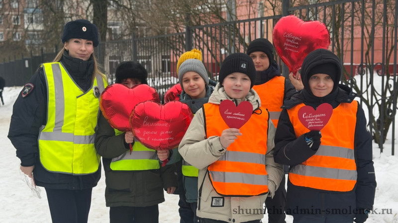 Юные инспектора дорожного движения из МБОУ «Средняя школа № 1» изготовили своими руками яркие валентинки в виде сердечек. На каждой из них были написаны важные напоминания: «Если любишь — пристегнешь», «Пропускайте пешеходов», «Носите световозвращающие элементы», «Безопасность — твой друг». Эти простые, но значимые послания стали основой для общения с водителями и пешеходами.