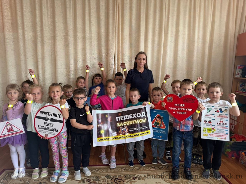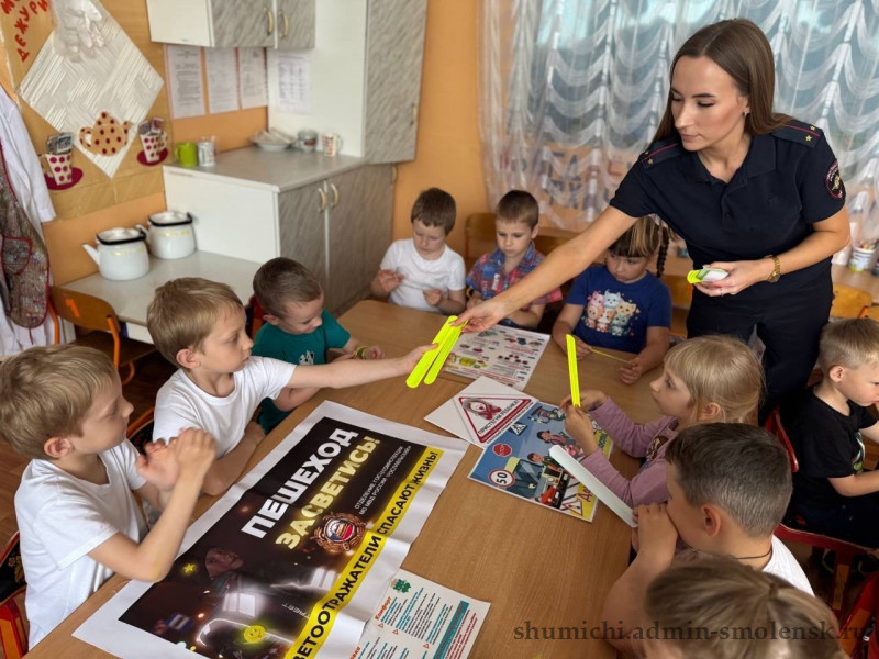 В рамках Недели детской безопасности по повышению безопасности детей на дорогах инспектор Госавтоинспекции МО МВД России «Рославльский» провела акцию «Засветись и пристегнись» в МБОУ ЦРР «Колокольчик» п. Шумячи.
