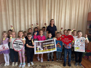 Инспектор по пропаганде БДД напомнила воспитанникам детского сада о правилах безопасного поведения на дорогах и пешеходных переходах, подчеркнув недопустимость использования наушников и мобильных телефонов при переходе проезжей части.