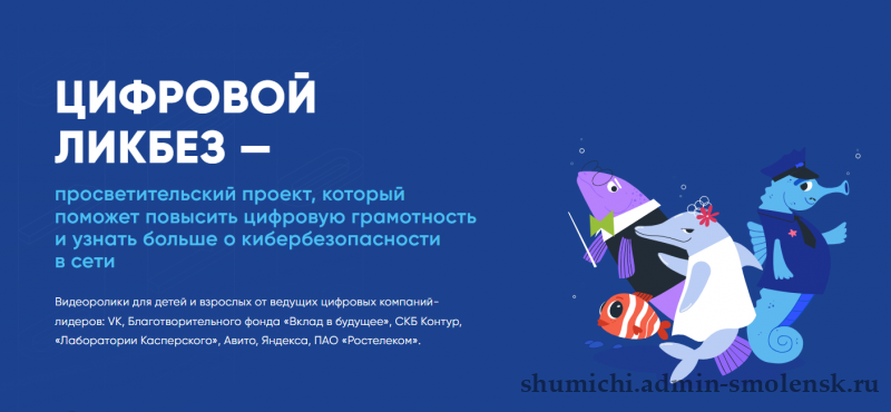 «Цифровой ликбез» – всероссийский просветительский проект, который помогает детям и взрослым повышать цифровую грамотность и узнавать больше о кибербезопасности в сети. Он объединяет серию образовательных мультипликационных роликов и методические материалы для педагогов, которые можно интегрировать в учебный процесс. Проект реализуется Минцифры России, Минпросвещения России и АНО «Цифровая экономика» в поддержку федерального проекта «Кадры для цифровой трансформации» национального проекта «Экономика данных и цифровая трансформация государства».