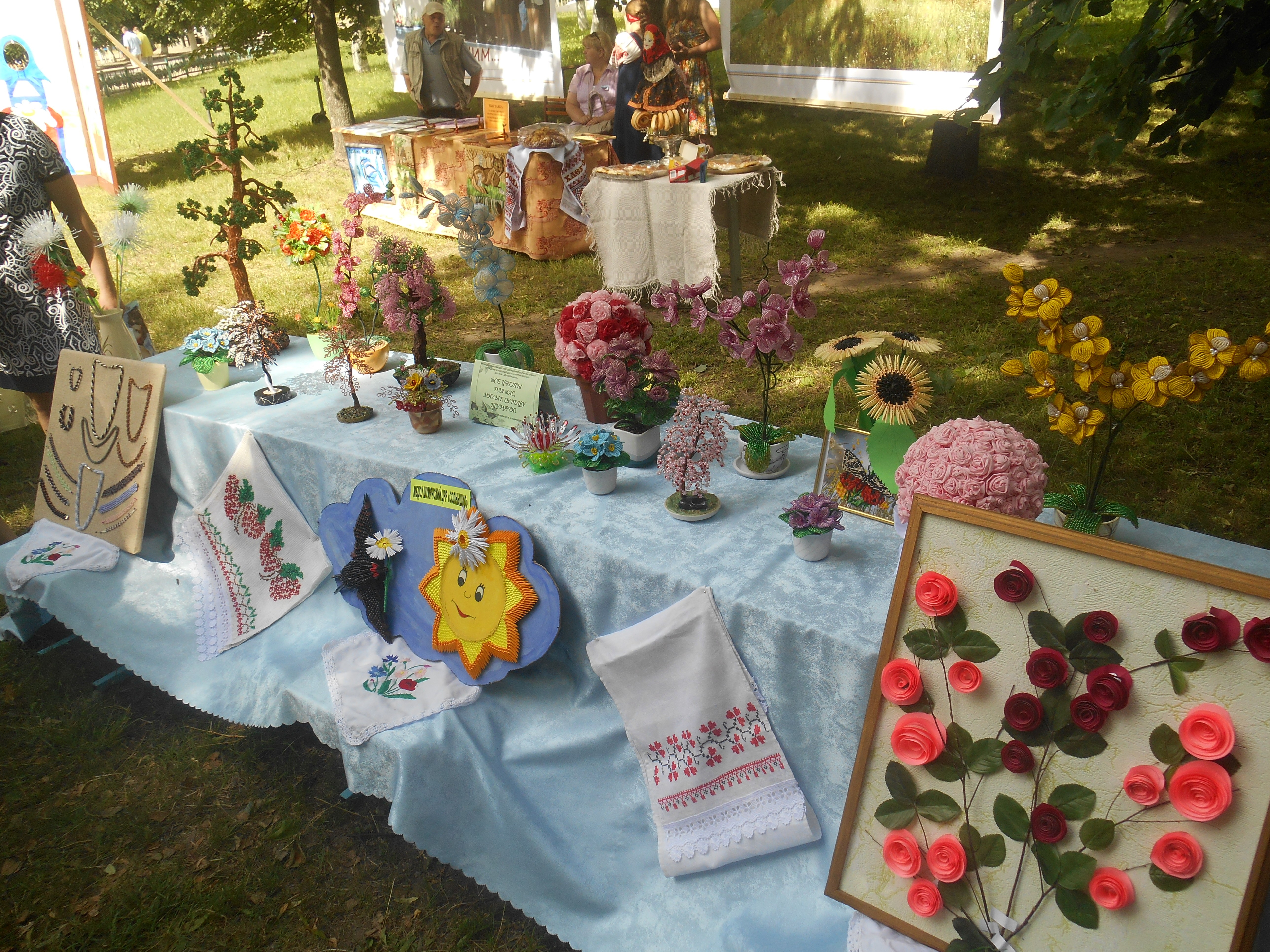 С самого утра в парке работала выставка-продажа изделий декоративно-прикладного искусства мастеров-умельцев Мстиславльского, Чериковского, Славгородского, Кричевского районов Могилевской области Республики Беларусь, Рославльского, Шумячского районов Смоленской области.