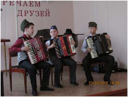 23 марта 2015г. состоялся конкурс юных музыкантов – исполнителей на народных инструментах в 2-х номинациях: солисты и ансамбли. Участниками конкурса стали учащиеся музыкальных школ и школ искусств г. Рославля, г. Десногорска, г. Ельни, с. Монастырщины, с. Ершичи, п.Шумячи Смоленской области и г. Кричева Республики Беларусь. Всего 38 учащихся, 15 преподавателей и концертмейстеров. Председатель жюри конкурса - Заслуженный работник культуры Российской Федерации, заместитель директора Шумячской детской школы искусств Галина Владимировна Трунилина.