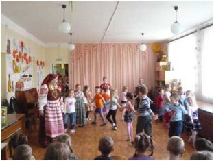 С большим удовольствием отзывались дети на предложения потанцевать, поводить хороводы, поиграть в игру вместе с участниками ансамбля «Плёс».