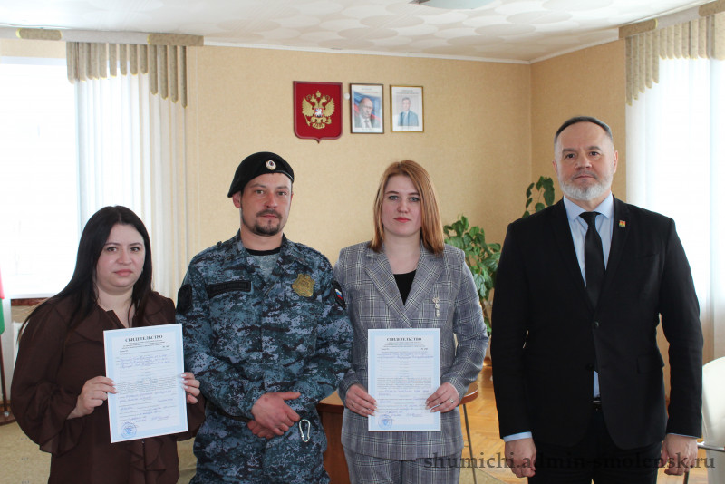 27 февраля глава нашего округа Дмитрий Каменев, в рамках реализации муниципальной программы «Обеспечение жильем молодых семей муниципального образования «Шумячский муниципальный округ» Смоленской области, вручил двум молодым семьям — Кулешовым и Михайловым — сертификаты на приобретение (строительство) жилья.