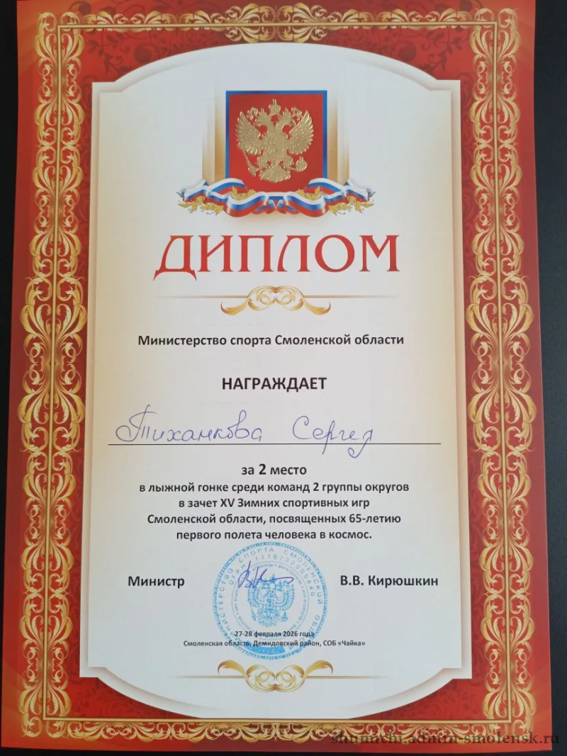 - Тиханов Сергей: второе место сразу в двух дисциплинах — лыжи и биатлон!