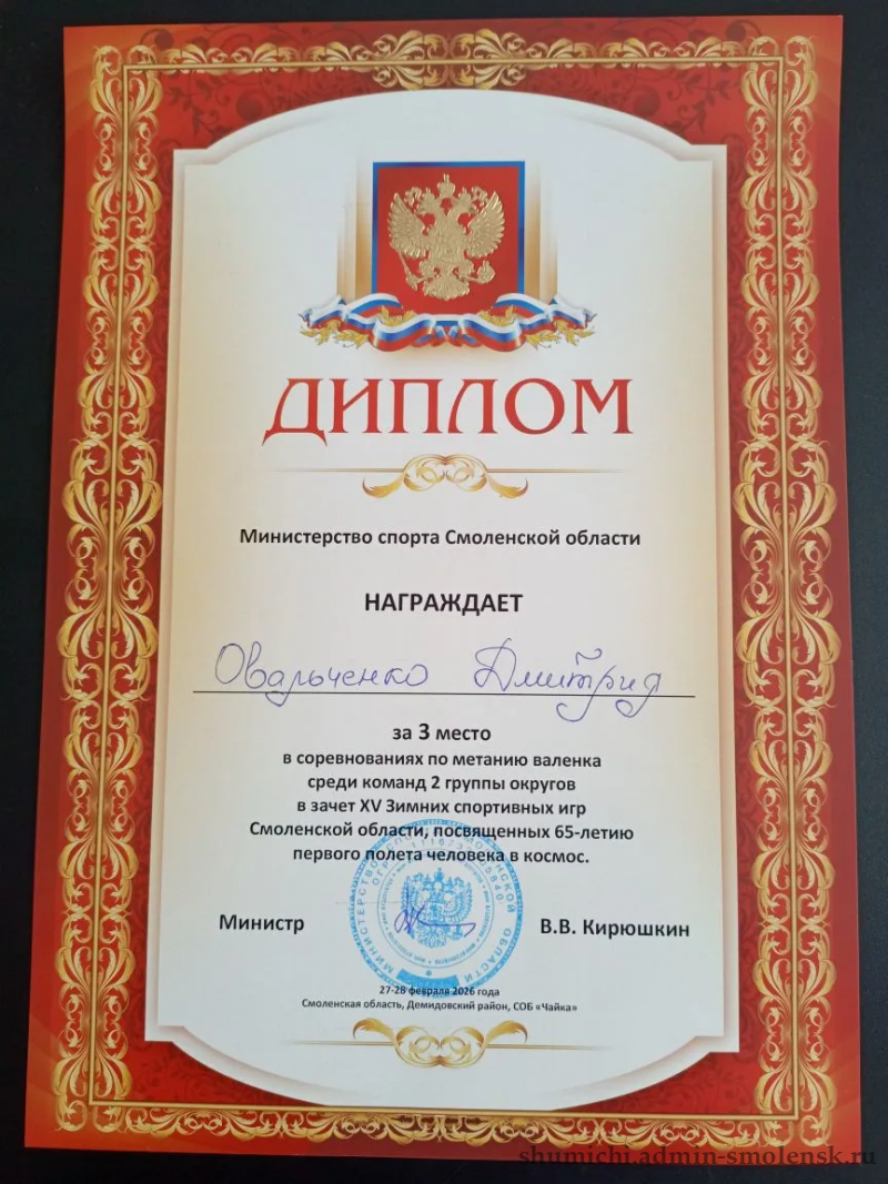 - Овальченко Дмитрий: третье место в конкурсе «Метание валенка»